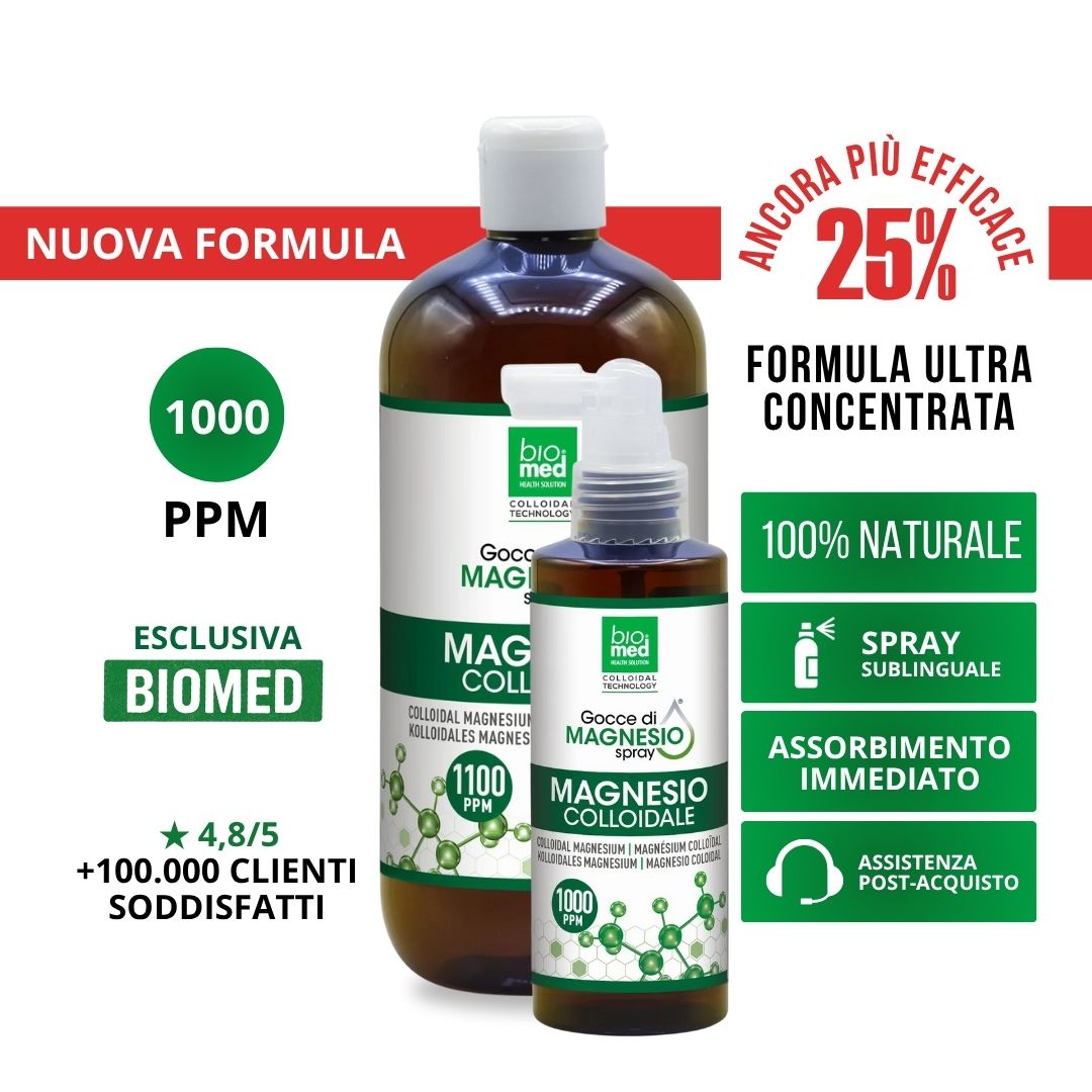 MAGNESIO COLLOIDALE SPRAY SUBLINGUALE BIOMED 1100 ppm - 150/500 ml - Biomed Colloidali - Sito Ufficiale - Acquista quì i tuoi colloidali Spray