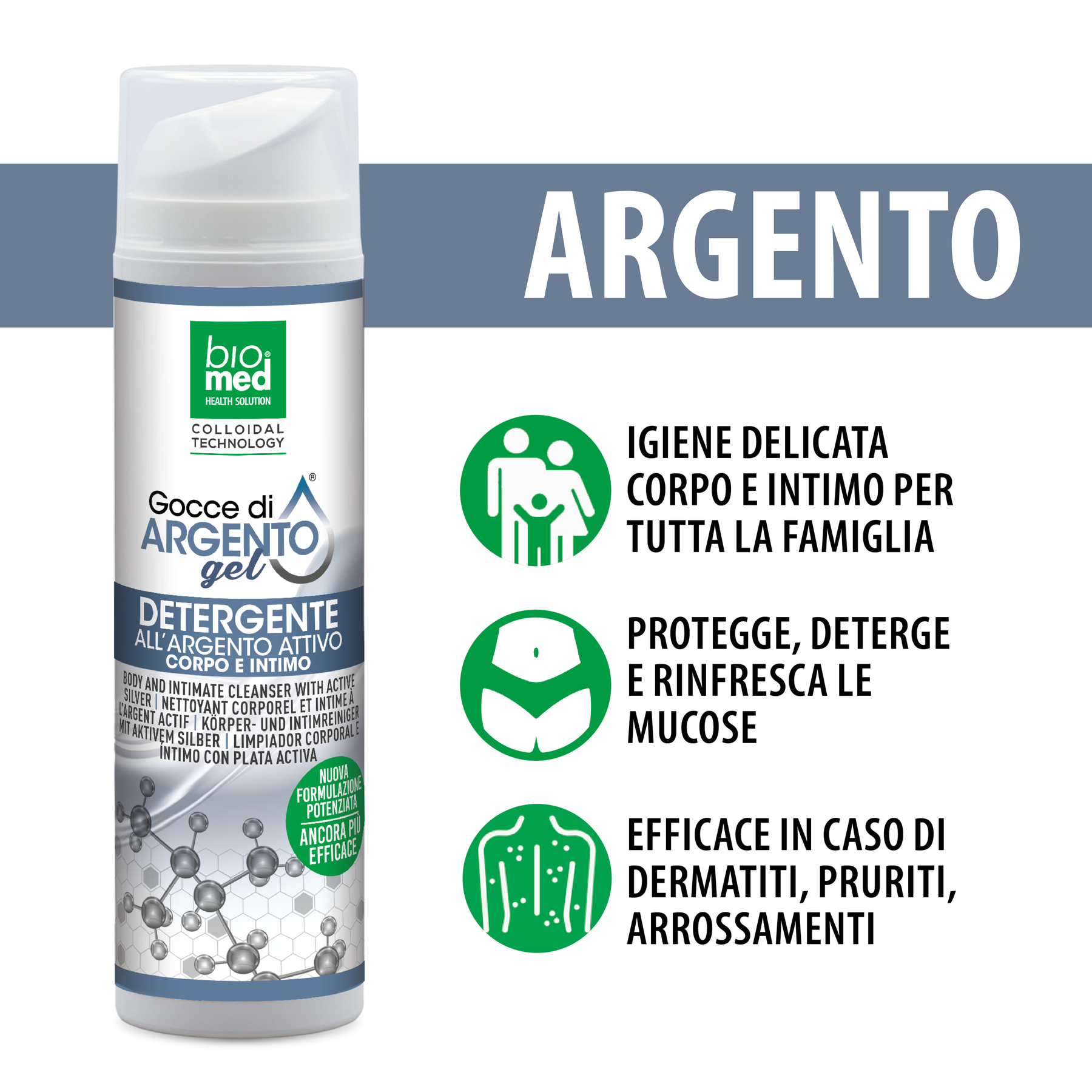GEL DETERGENTE CORPO E INTIMO - ARGENTO ATTIVO BIOMED - 200 ML